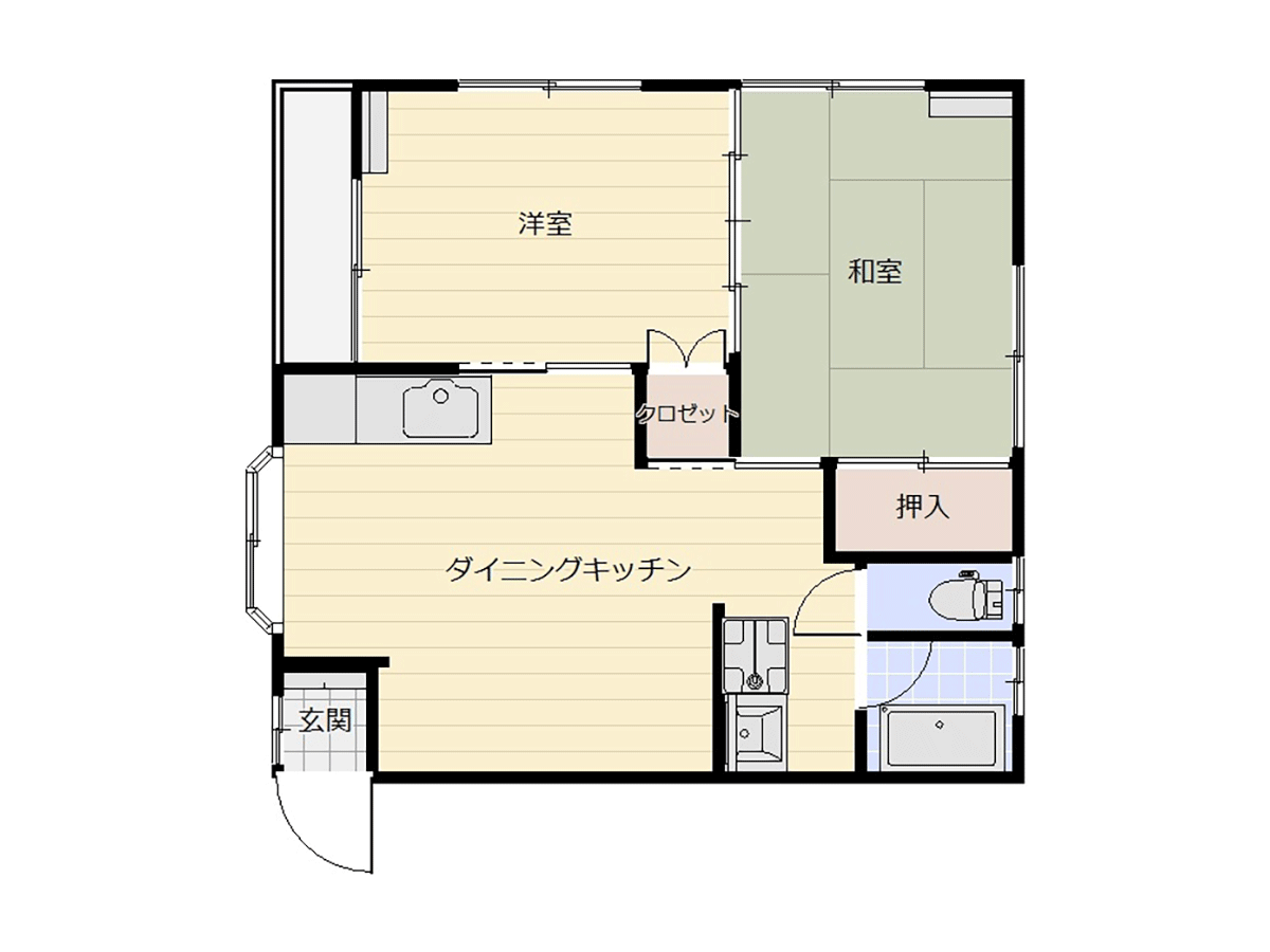 2DKの間取で、1部屋は落ち着いたな和室あり