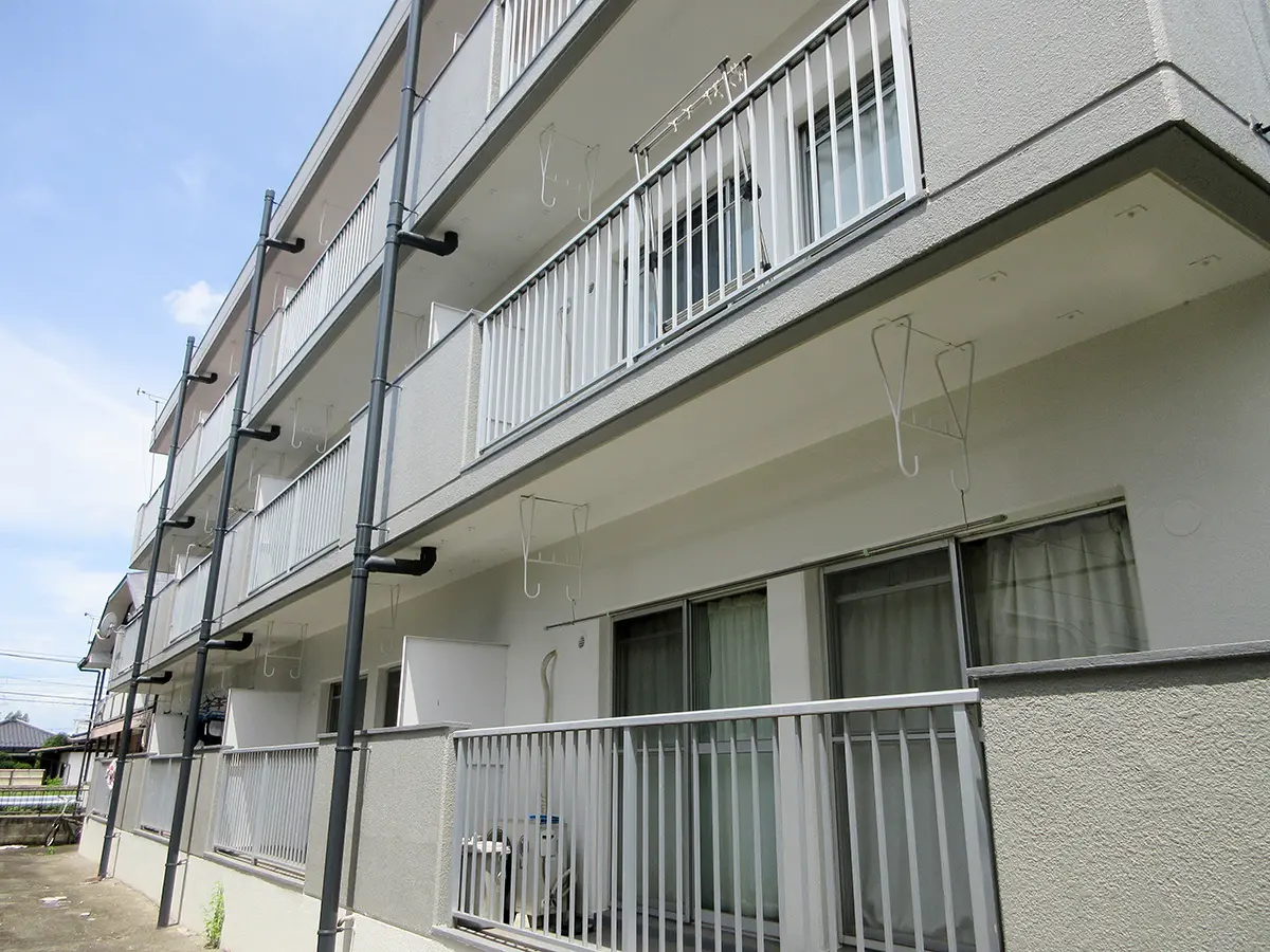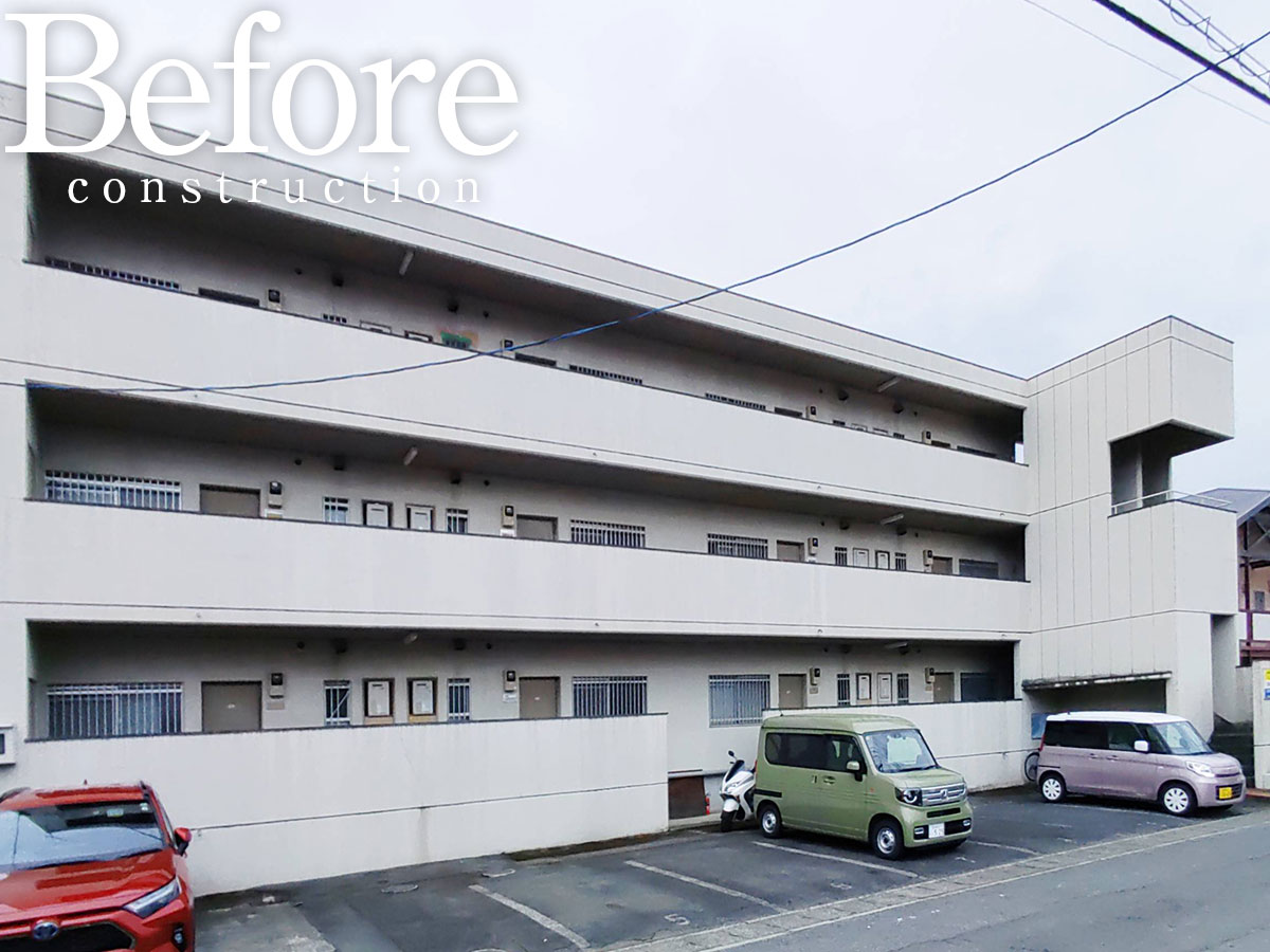 1983年築の物件を完全リノベーション。ライトグレーに白のワンポイントが入り、シックで落ち着いた感じの建物に生まれ変わりました。