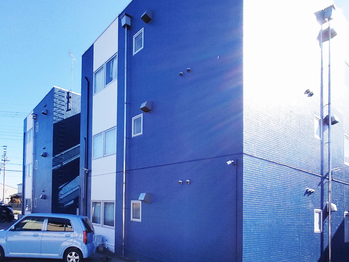 建物の間に渡り廊下が設置されているのが特徴な3階建てのアパートで、間取りは9帖のワンルームタイプが全18室。ショッピングセンターも近くにあり、学生さんに人気の物件です。