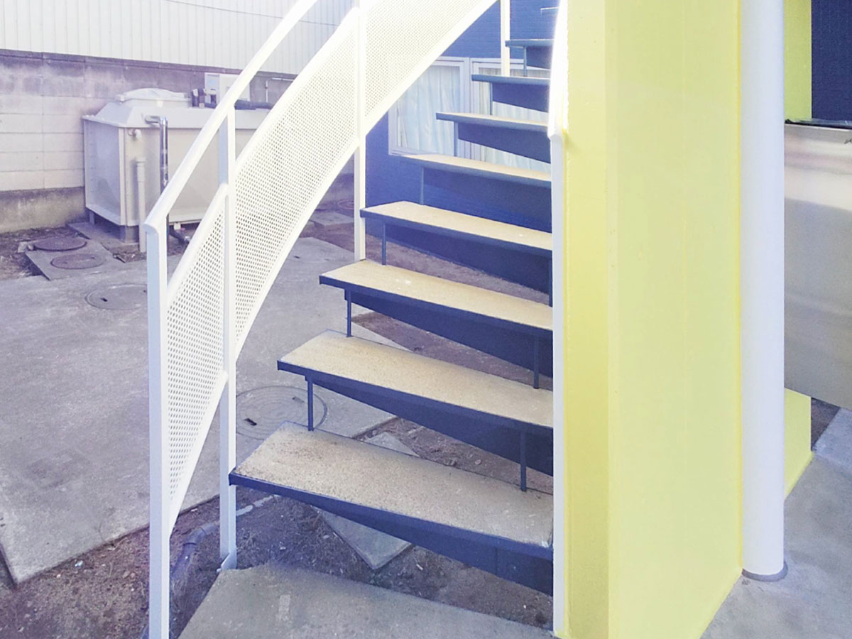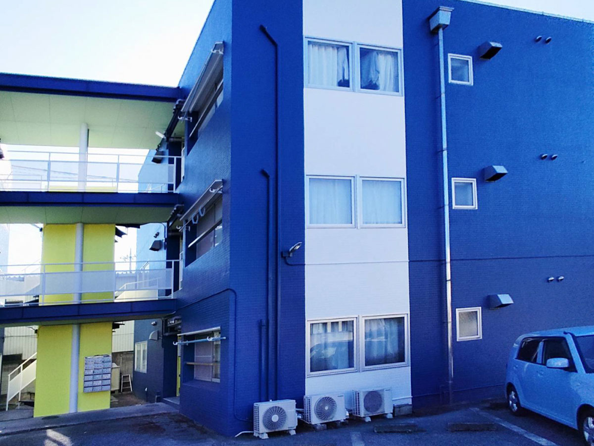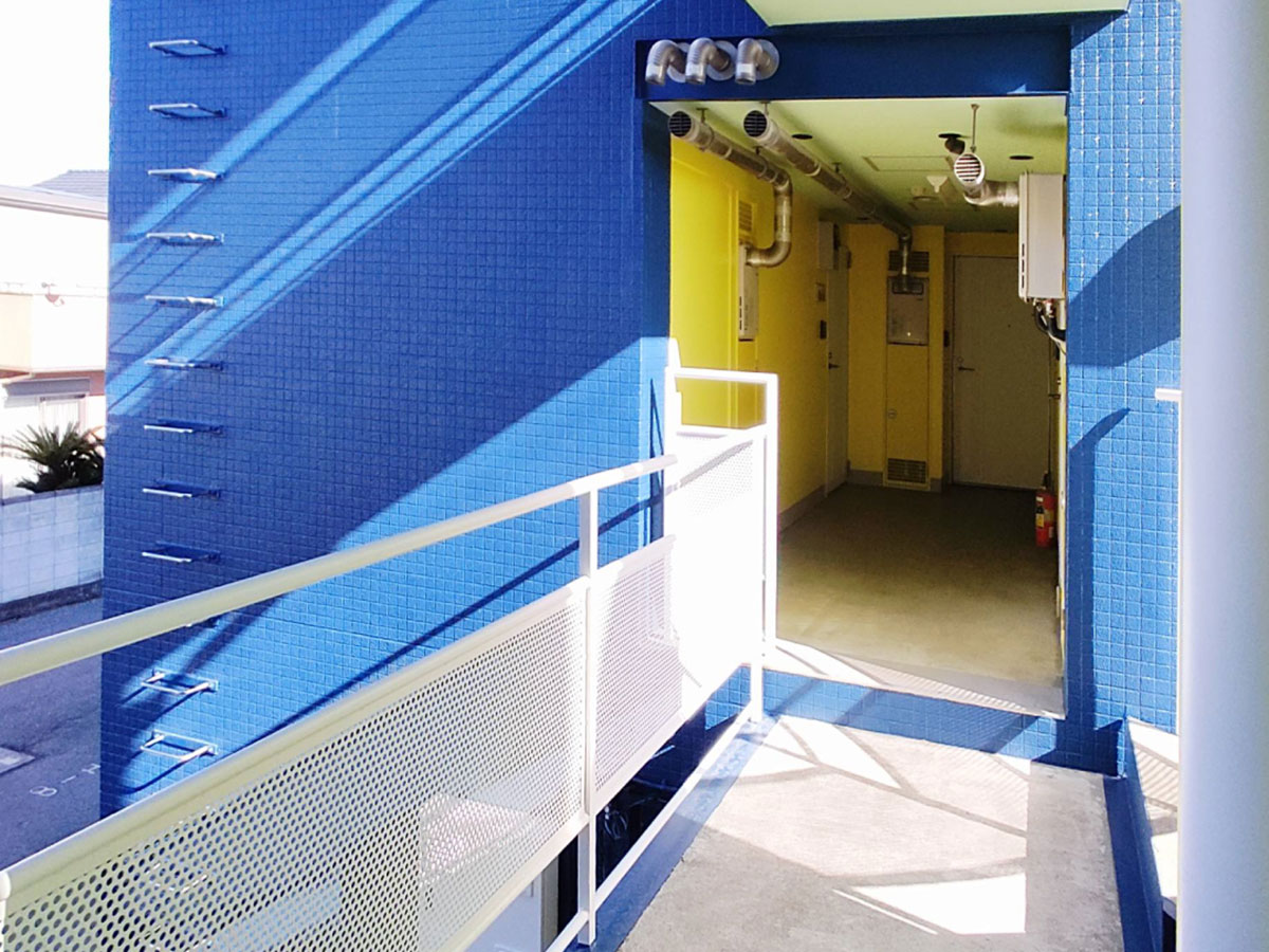 1991年築の建物はもともと、タイル調のちょっと冷たい感じの雰囲気でしたが、リノベーションに伴い、ブルーを基調に白とイエローのワンポイントが入った、若者向けの爽やかな建物へと変わりました。